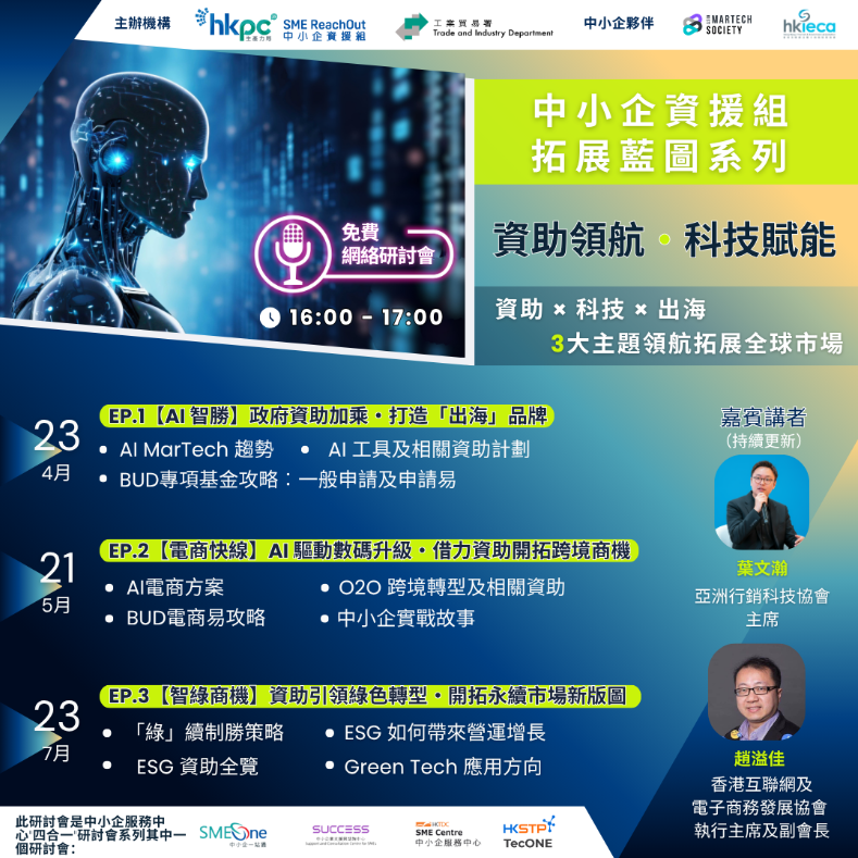「中小企資援組」網絡研討會全新系列︰「資助領航・科技賦能」