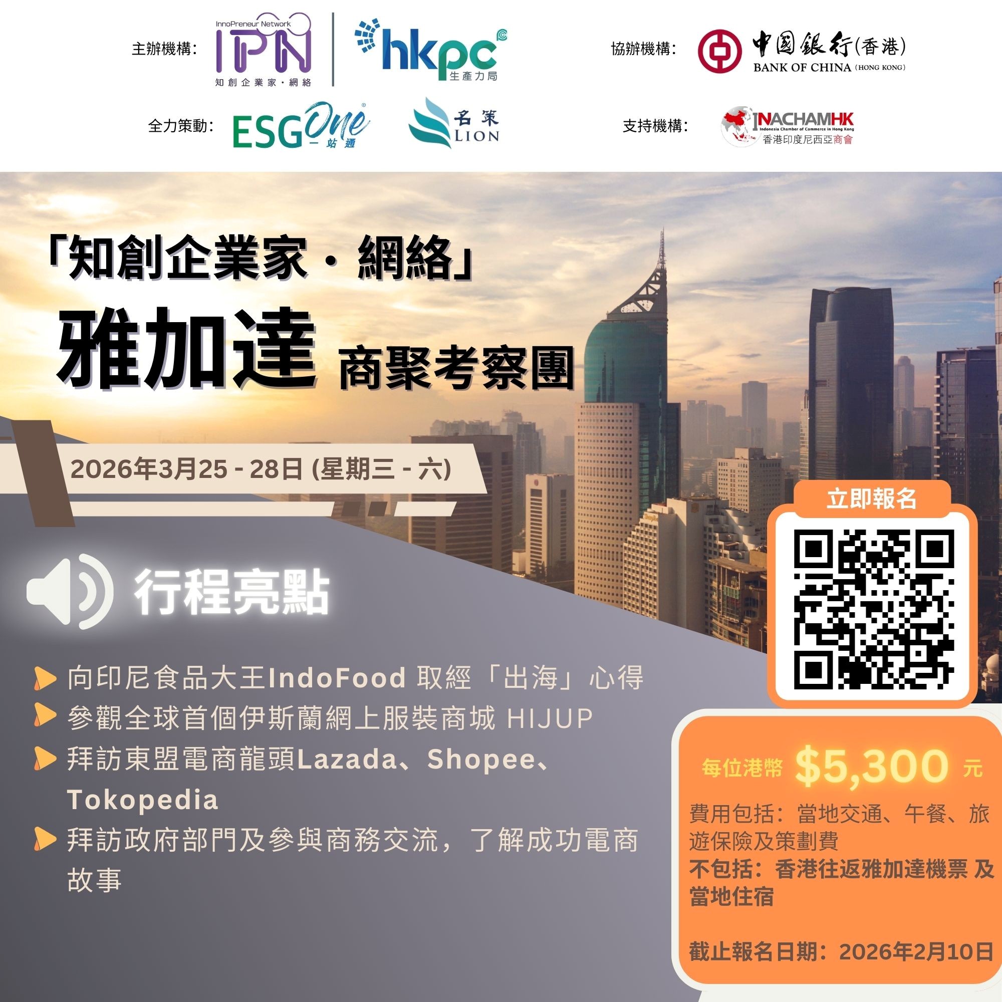 作為東盟最大的經濟體,印尼正迅速推動電子商務增長!生產力局與中國銀行(香港)攜手舉辦「知創企業家•網絡」雅加達考察團。考察團將深入聚焦印尼電商,帶領香港中小企業親臨各大電商平台(如Lazada、Shopee、Tokopedia、Hijup等),並探索印尼巨頭「營多撈麵」生產商Indofood。與印尼政商各界的交流將助力中小企業攻克印尼市場!